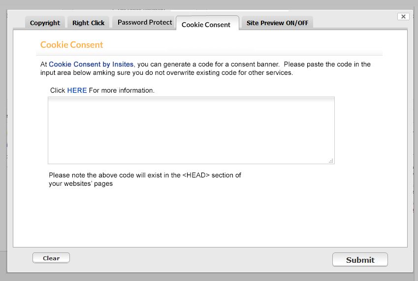 2. The Cookie Consent Option loads a popup window that looks like this: