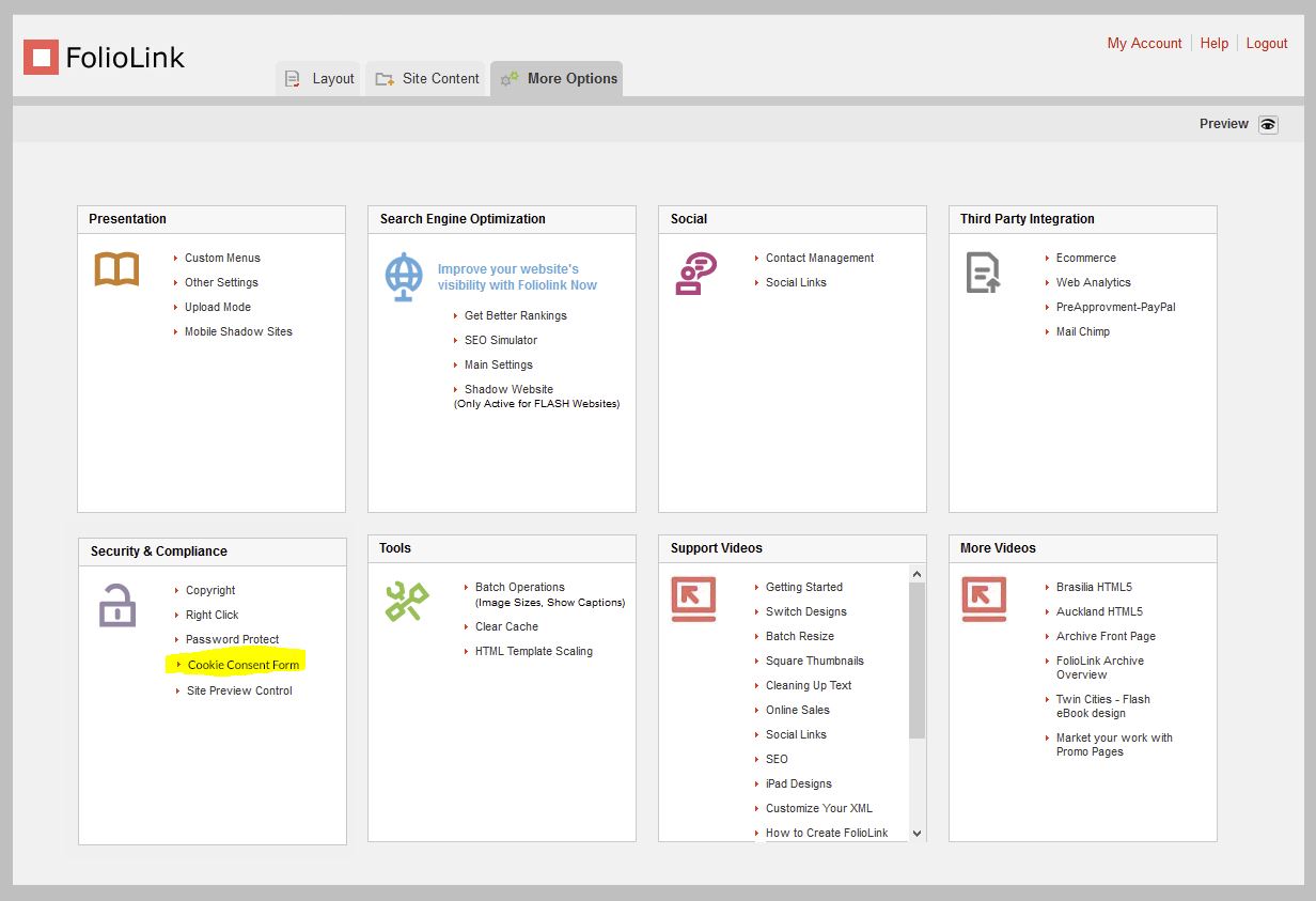 1. Login to FolioLink and go to More Options / Cookie Consent menu