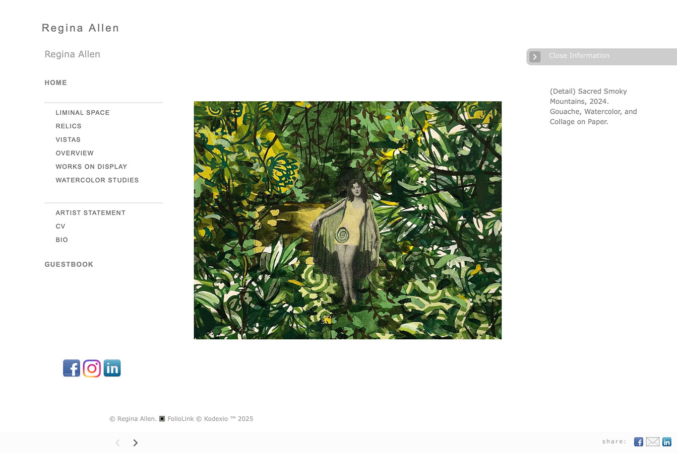 I needed a new website—fast! I'm a professional painter with design skills training and I only reluctantly delegate design work to anyone else. For years I had designed and maintained my own website—rewarding work at times, but more often frustrating and time consuming. When my website crashed, the timing couldn't have been worse: I had just sent out a huge promotion and was expecting a lot of website traffic. FolioLink offered an immediate and elegant design solution. Within hours of signing up, the most critical information had been uploaded and was running beautifully. Art-portfolio websites involve a perplexing amount of HTML and even the cleanest, least cluttered websites are complex. FolioLink does this tedious HTML work while giving you, the artist, control of editing and uploading your own content. Any questions are answered by a friendly and helpful staff, accustomed to working with artists and their needs.
